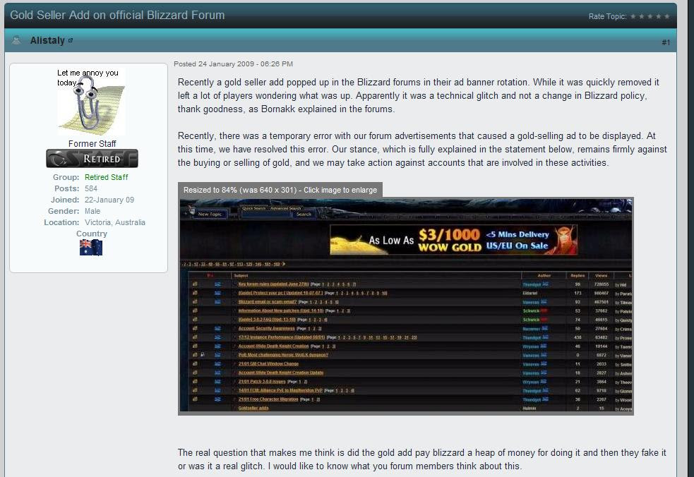 Way to represent your business too by the way: steal company time, don't support your customers, then troll webpages. Judging by your access logs and constant refreshes, I can see that you're totally dedicated to your job.. trolling that is, not supporting Blizzard customers.